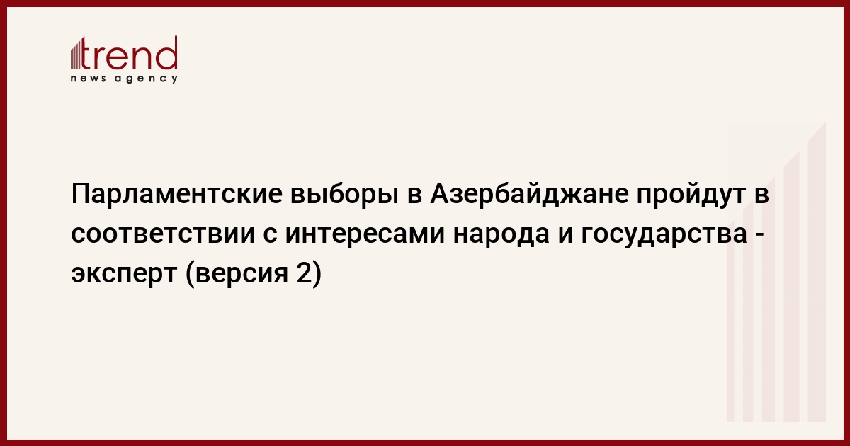 БАКУ /Trend/ - Парламентские выборы в Азербайджане пройдут в соответствии с интересами народа и государства. Об этом сказал руководитель экспертного совета "Baku Network", доктор философии Эльхан Алескеров во вторник в ходе видеомоста Баку-Москва на тему "Азербайджан в преддверии парламентских выборов".
