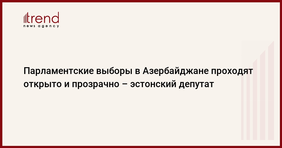 БАКУ /Trend/ - Парламентские выборы в Азербайджане проходят открыто и прозрачно, о чем свидетельствует присутствие большого числа как зарубежных, так и местных наблюдателей, сказал в воскресенье Trend глава наблюдательной миссии парламента Эстонии Михаил Корб.