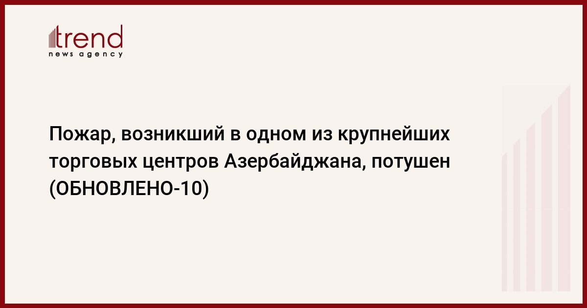 Азербайджан, Баку, 21 декабря /корр. Trend С.Казымлы/ К тушению пожара, возникшего на территории одного из крупнейших торговых центров Азербайджана "Садарак", были привлечены 40 пожарных машин и два вертолета. Об этом журналистам сообщил замминистра МЧС Азербайджана Этибар Мирзоев. По его словам, пожар полностью потушен, хотя в отдельных местах еще есть небольшие очаги возгорания.
