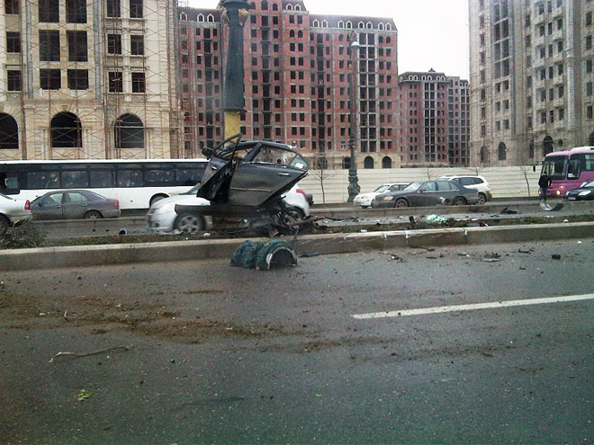 Водитель автомобиля марки "Мерседес" с государственным номером 90 KY 420 Азизов Рамин Вилаят оглу сбил пешехода Шахвердиеву Светлану Агалар гызы, затем, потеряв управление, сбил еще двух пешеходов, стоявших на обочине.