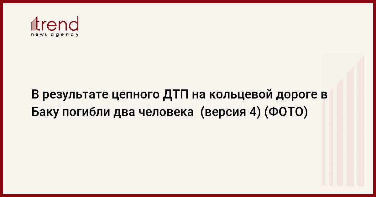 В результате цепной аварии с участием пяти автомобилей, произошедшей в пятницу утром в Баку на кольцевой дороге около автомобильного рынка, погибли два человека, ранены пятеро, сообщили Trend в Управлении дорожной полиции Баку МВД Азербайджана.