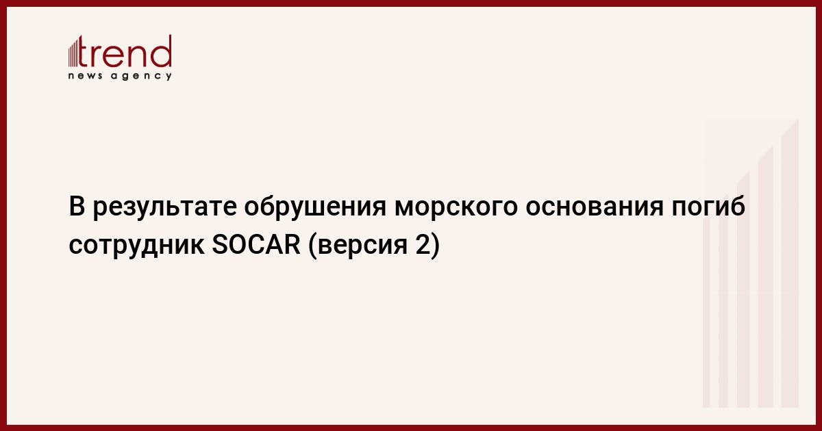 БАКУ /Trend/ - В четверг в результате обрушения морского основания один сотрудник компании SOCAR (Госнефтекомпания Азербайджана) погиб, поиски еще одного человека продолжаются, говорится в сообщении компании.