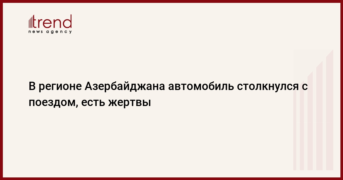 БАКУ /Trend/ - На территории деревни Сабиркенд в Шамкирском районе 8 мая в 20:00 на неохраняемом участке железной дороги произошло столкновение легкового автомобиля с поездом, передает Kəpəz TV.