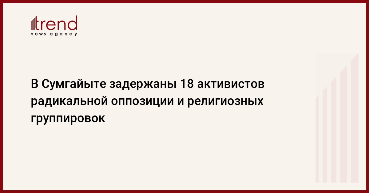 БАКУ /Trend/ - В воскресенье в Сумгайыте в результате профессиональных и решительных действий правоохранительных органов были арестованы 18 активистов радикальных религиозных группировок и поддерживающих их сторонников радикальной оппозиции.