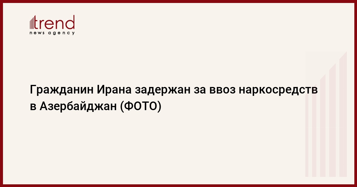 БАКУ /Trend/ - На Билясуварском таможенном посту в Азербайджане был задержан гражданин Ирана Никджу Тапех Бахрам Муса (Nıkjou Tapeh Bahram Mousa), который был опрошен о наличии у него каких-либо запрещенных предметов, в том числе, наркотических средств и психотропных веществ, сообщает в понедельник Trend со ссылкой на Государственный таможенный комитет (ГТК).