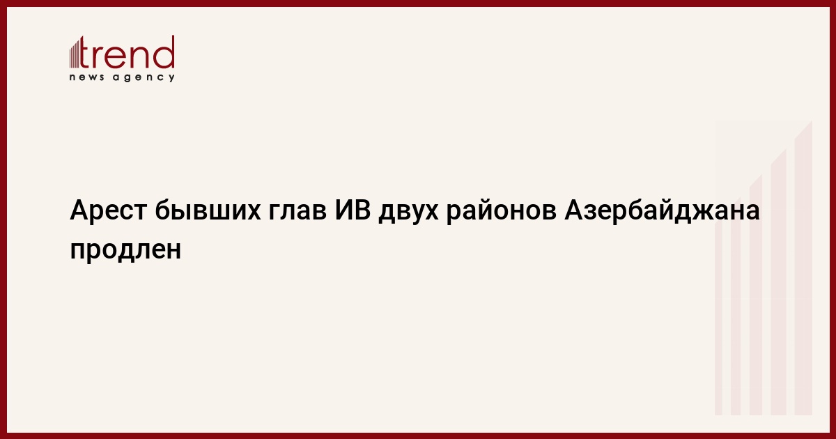 БАКУ/Trend/ - Арест бывшего главы Агстафинского района Низамеддина Гулиева, его бывшего заместителя Рамиза Татарова и бывшего главы Исполнительной власти Евлахского района Годжи Самедова продлен, сообщает в понедельник Trend.