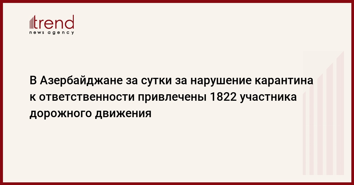 БАКУ /Trend/ - На территории республики с 00:00 21.04.2020 до 00:00 22.04.2020 за нарушение особого карантинного режима, введенного в целях предотвращения распространения коронавирусной инфекции (COVID-19), были задержаны 1822 участников дорожного движения, сообщает в среду Trend со ссылкой на Главное управление государственной дорожной полиции.