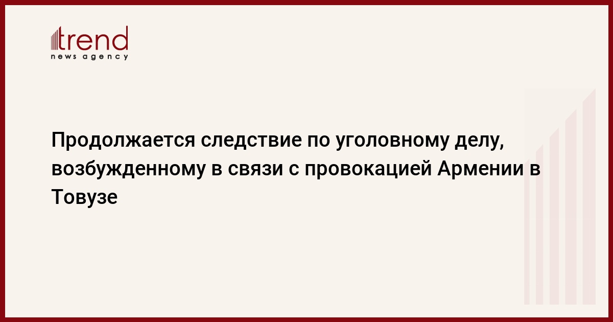 БАКУ /Trend/ - Продолжается следствие по уголовному делу, возбужденному в связи с ущербом, нанесенным армянскими вооруженными силами гражданскому населению в Товузском районе на азербайджано-армянской границе с 12 по 16 июля 2020 года.