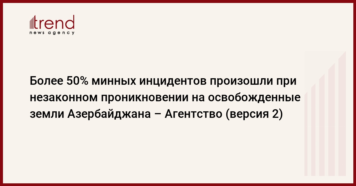 БАКУ /Trend/ - 51 процент минных инцидентов произошел в результате незаконного проникновения на освобожденные территории Азербайджана, а 26 процентов - во время выхода за пределы очищенной от мин территории, сообщает во вторник Trend со ссылкой на Агентство Азербайджана по разминированию.