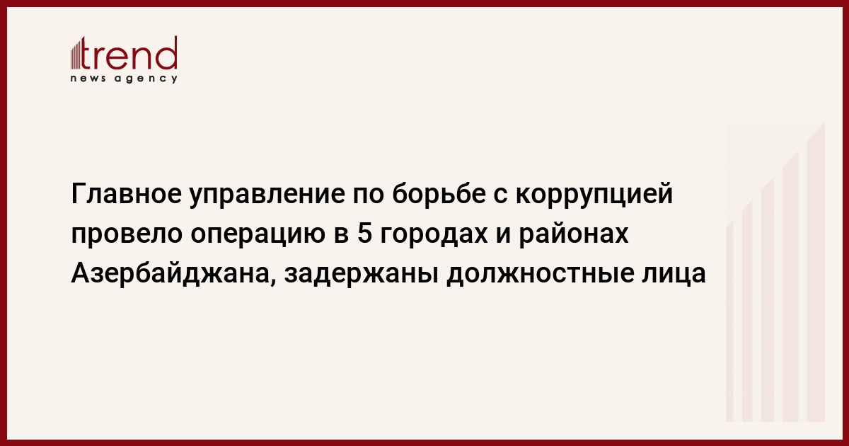 БАКУ /Trend/ - Главное управление по борьбе с коррупцией провело операцию в пяти городах и районах Азербайджана, задержаны должностные лица Государственной службы по вопросам имущества и муниципалитетов.