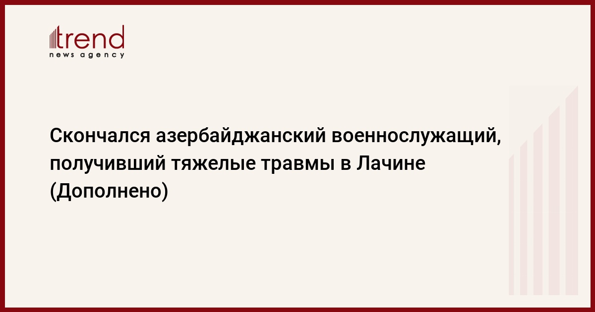 БАКУ /Trend/ - Скончался рядовой азербайджанской армии Алиев Таир Чингиз оглу, получивший 5 августа тяжелые травмы в результате падения обломка скалы в Лачинском районе, сообщает Trend со ссылкой на минобороны Азербайджана.