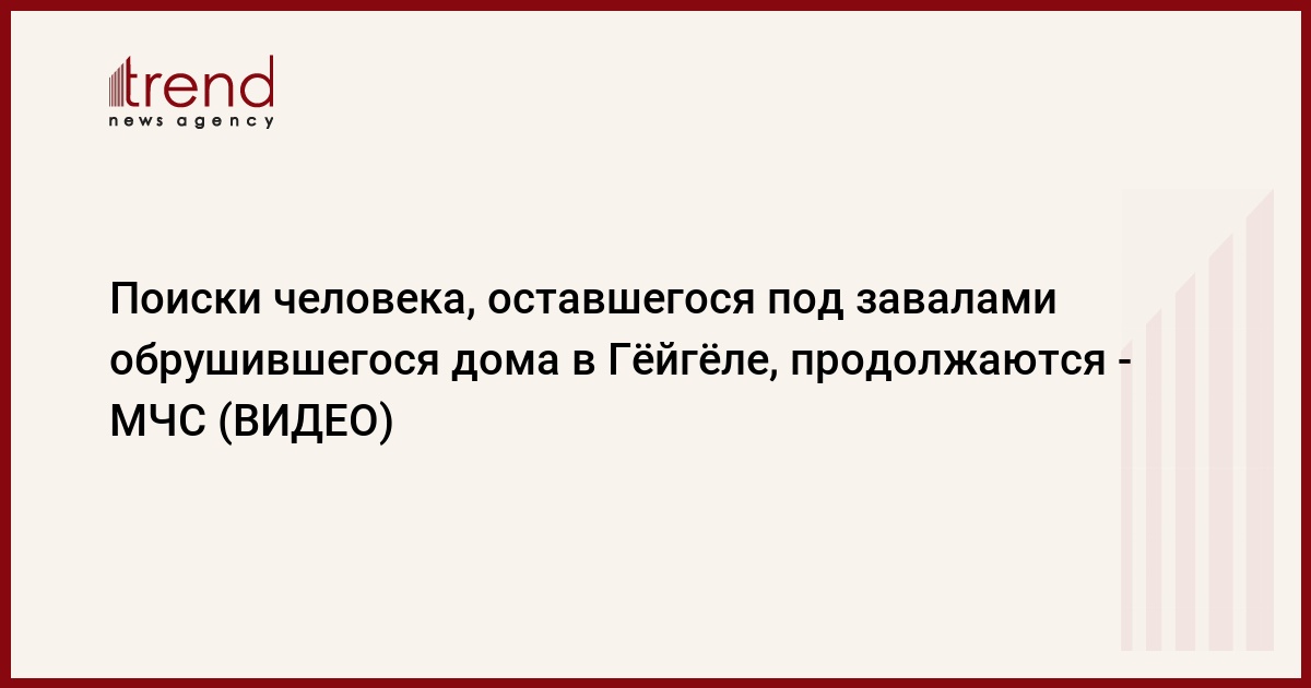 БАКУ /Trend/ - Как сообщалось ранее, на горячую линию МЧС Азербайджана "112" поступила информация о том, что обрушился частный дом в городе Гёйгёль, и один человек остался под завалами.
