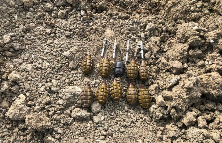 После принятия соответствующих мер безопасности на месте совместно с сотрудниками правоохранительных органов был проведен осмотр территории. Были обнаружены годные к применению 9 ручных гранат F-1, одна учебная ручная граната РГД-5 и 4 запала УЗРГМ.