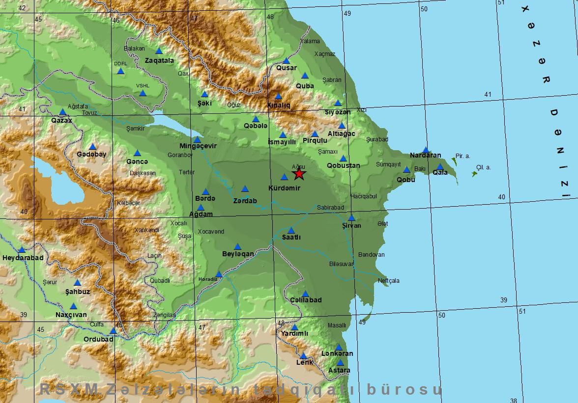 Согласно информации, подземные толчки были зафиксированы в 07:59 по местному времени в 17 км к востоку от Кюрдамирской станции в Агсуинском районе, очаг залегал на глубине 41 км.