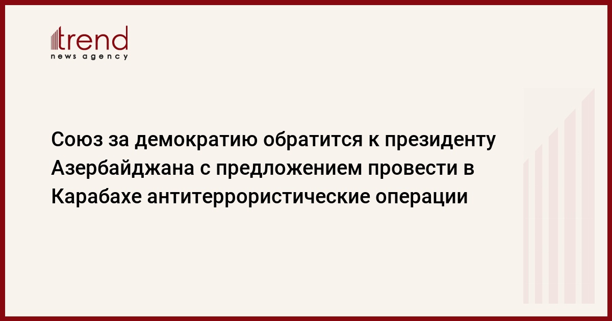 Азербайджан, Баку /корр. Trend С. Ильхамгызы / Союз за демократию обратится к президенту Азербайджана с предложением провести на оккупированных территориях антитеррористические операции. Об этом Trend сообщил председатель партии Народного фронта Азербайджана Мирмахмуд Миралиоглу.