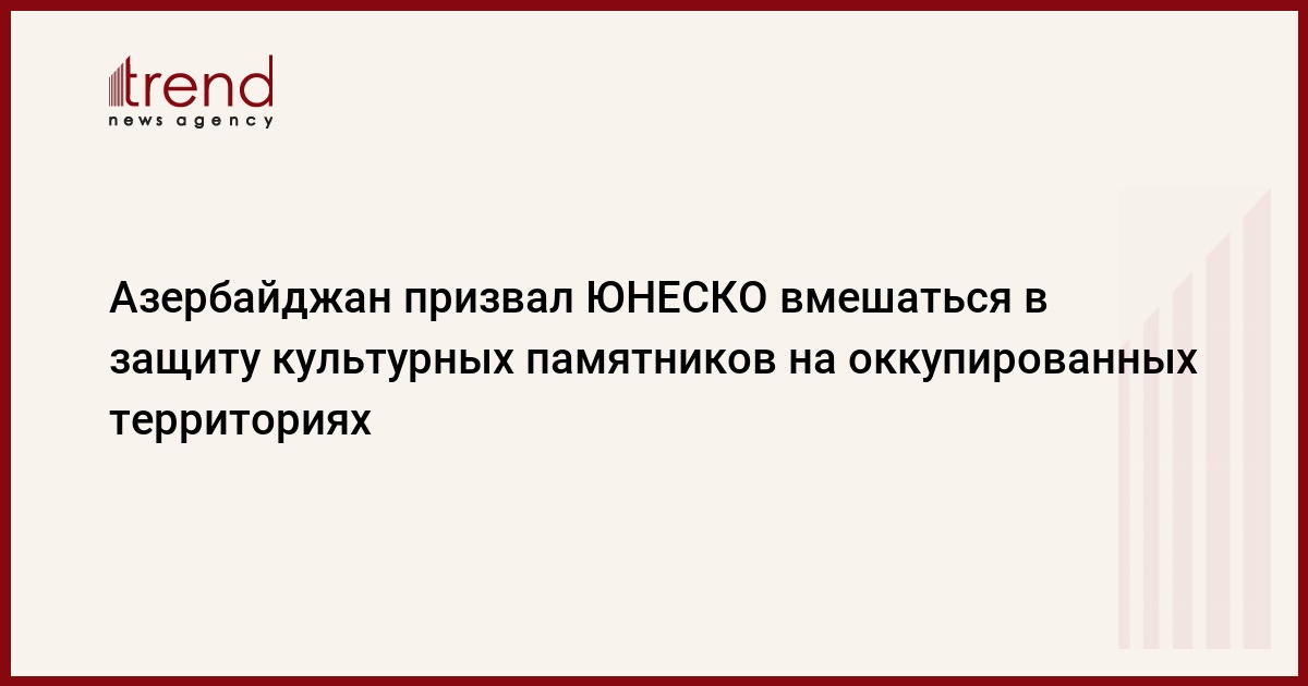 в короткие сроки начать тесное сотрудничество для защиты от уничтожения культурных памятников азербайджанского народа на оккупированных территориях и в Армении. Об этом сообщил министр иностранных дел Азербайджана Эльмар Мамедъяров в четверг, выступая на Генеральной Конференции ЮНЕСКО.