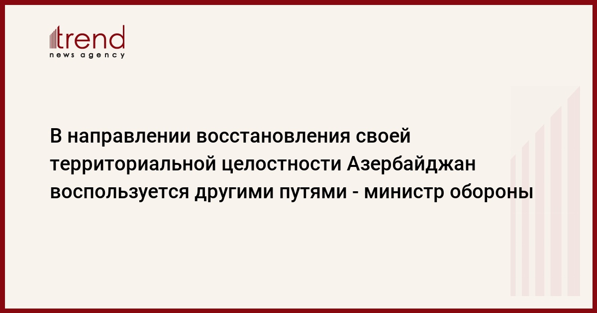 Азербайджан, Баку /корр. Trend Э.Гусейнли / Если решение нагорно-карабахского конфликта путем мирных переговоров не дадут конкретных результатов, Азербайджан воспользуется и другими путями в направлении восстановления своей территориальной целостности. С таким заявлением в четверг выступил министр обороны Азербайджана, генерал - полковник Сафар Абиев, в ходе встречи с новоназначенным послом Великобритании в Азербайджане г-жой Каролин Браун.
