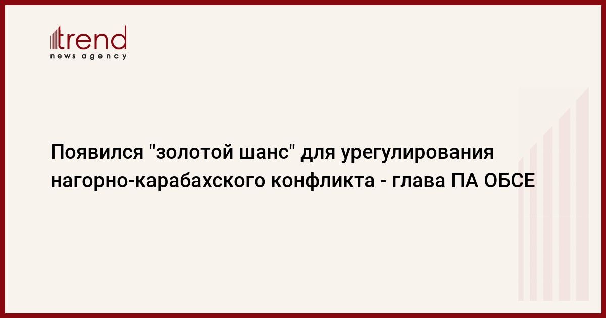 Испания,Мадрид/корр. Trend А.Магеррамли/ Появился "золотой шанс" для урегулирования нагорно-карабахского конфликта, заявил в четверг в Мадриде на 15-ом заседании Совета министров ОБСЕ председатель Парламентской Ассамблеи организации Горан Ленмаркер.