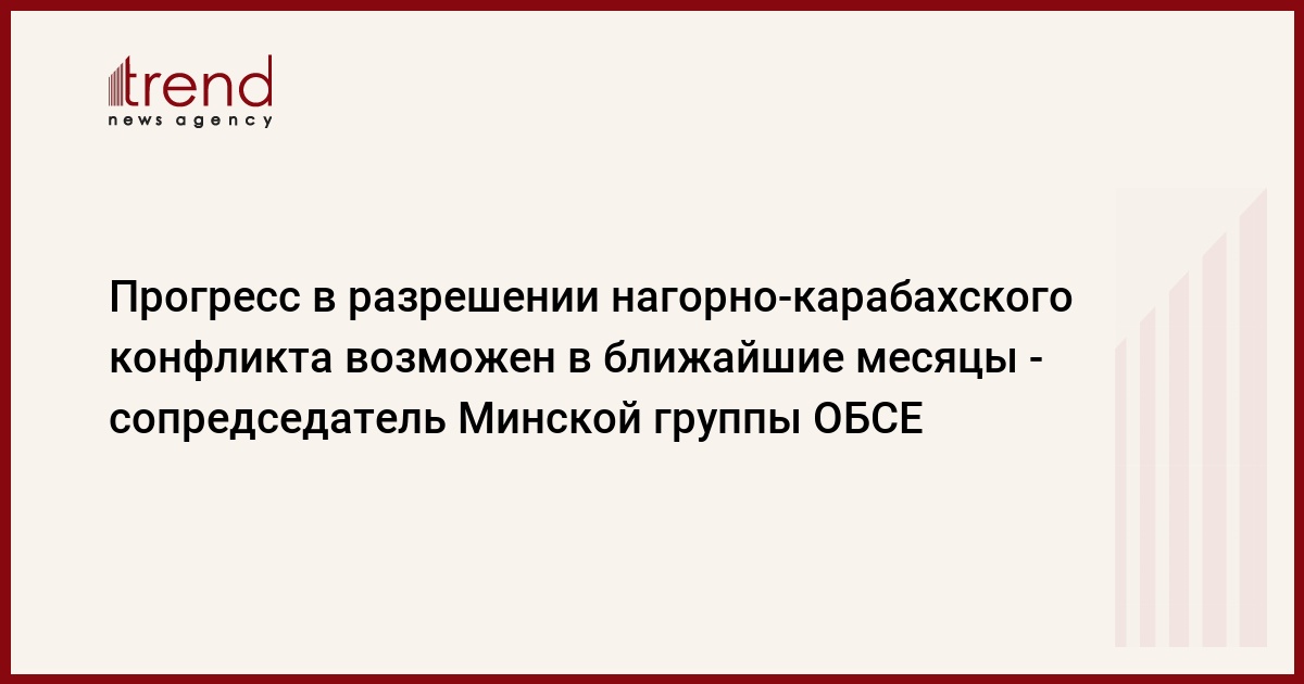 Азербайджан, Баку, 7 ноября /корр. Trend А.Гасымова/ Доверие между президентами Азербайджана и Армении растет и объективные факты таковы, что серьезный прогресс в разрешении нагорно-карабахского конфликта возможен в течение последующих нескольких месяцев, сказал по телефону Trend сопредседатель Минской группы ОБСЕ от США Мэтью Брайза.