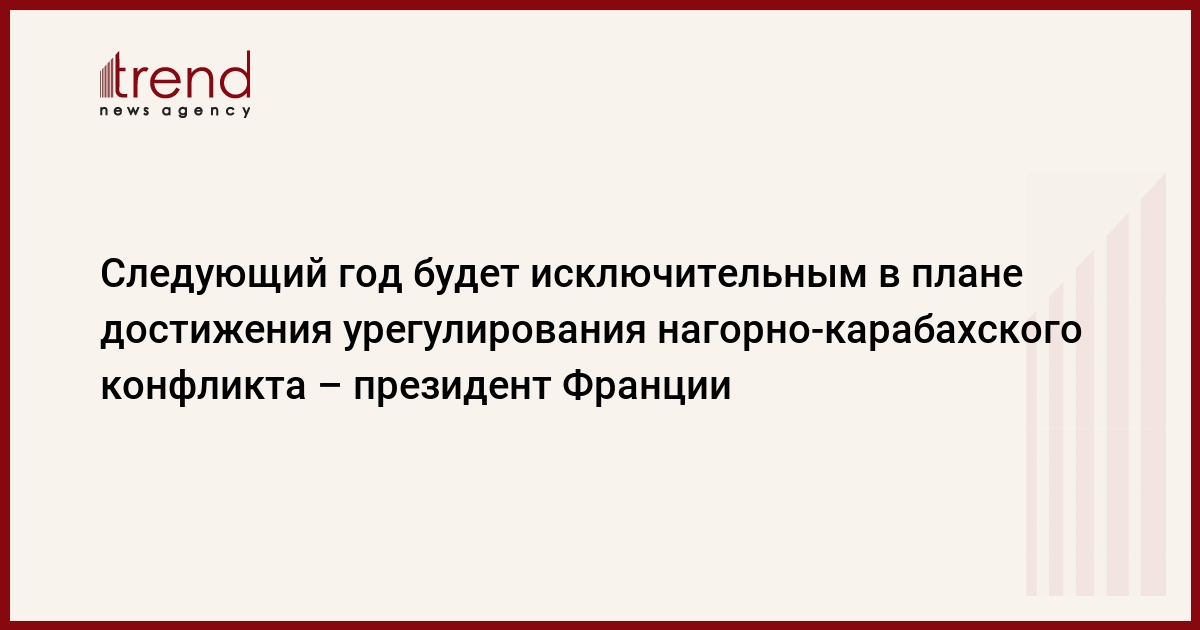 Следующий год будет исключительным и целесообразным для достижения урегулирования нагорно-карабахского конфликта, и этой возможностью необходимо воспользоваться, считает президент Франции Николя Саркози, распространяет государственное информационное агентство "АзерТАдж".