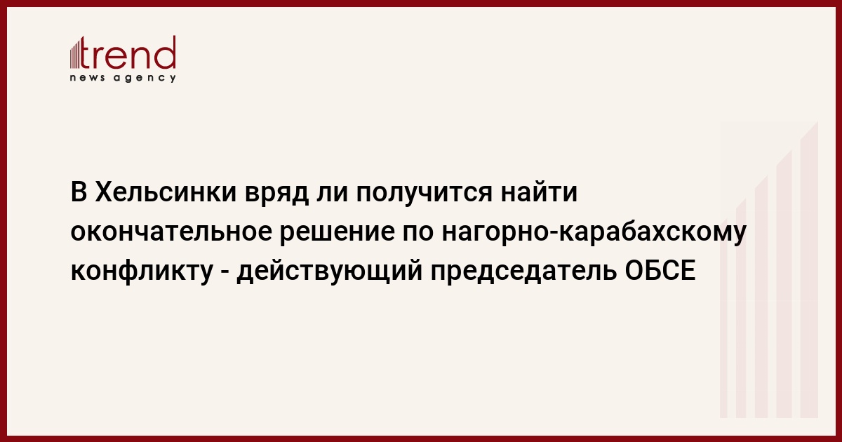 Финляндия, Хельсинки, 4 декабря/ корр. Trend Э.Гусатинская/ "Проделана хорошая работа, в этом году достигнут определенный прогресс, и я верю, что в будущем нагорно-карабахский конфликт будет урегулирован. Однако завтра в Хельсинки вряд ли получится найти окончательное решение", сказал в среду на пресс-конференции в Хельсинки действующий председатель ОБСЕ Александер Стубб.