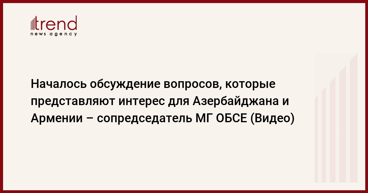 Азербайджан, Баку, 27 февраля /корр. Trend Э.Рустамов/ Началось обсуждение тех вопросов, которые представляют интерес для Азербайджана и Армении, по которым сопредседателям было предложено высказать свои соображения. Об этом в пятницу сказал журналистам в бакинском аэропорту российский сопредседатель Минской группы ОБСЕ Юрий Мерзляков.