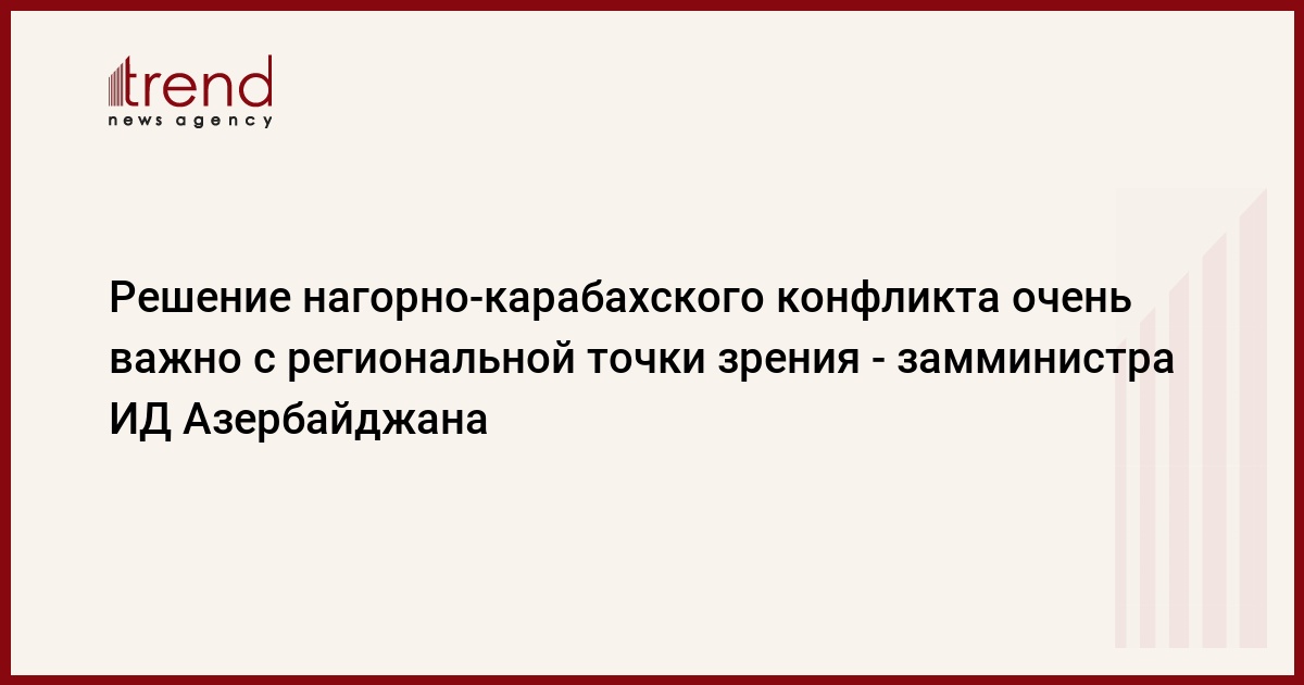 Решение нагорно-карабахского конфликта очень важно с региональной точки зрения, так как все коммуникации и дороги закрыты, сказал замминистра иностранных дел Азербайджана Араз Азимов.