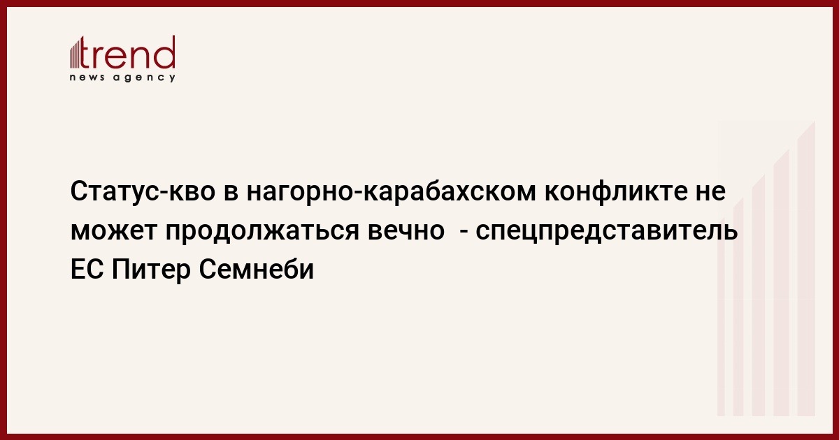 Говоря о прогрессе в мирном урегулировании армяно-азербайджанского нагорно-карабахского конфликта, Семнеби сказал, что на него можно надеяться, "но время поджимает". "Ситуация в регионе меняется, статус-кво не может вечно продолжаться. Я очень надеюсь, что тот толчок, который был отмечен в прошлом году, приведет к конкретным результатам. Во всяком случае, мы будем этому способствовать", - сказал спецпредставитель Евросоюза.