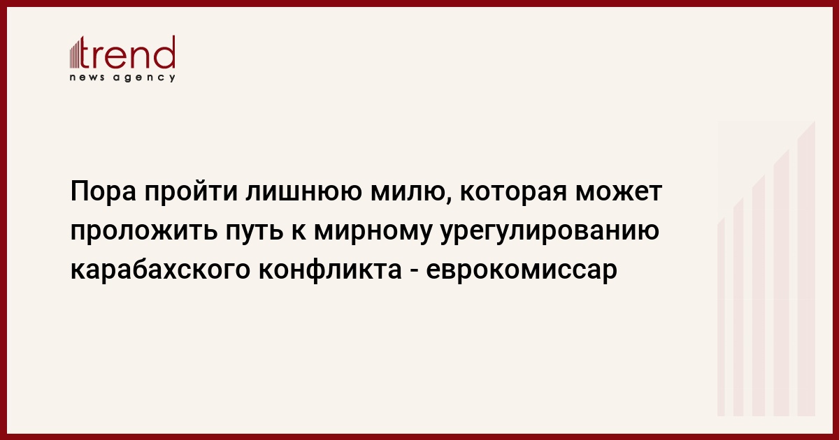 Комиссар ЕС высоко оценил волю и работу, проделанную до настоящего времени президентами Азербайджана и Армении, направленную на ускорение мирных переговоров.