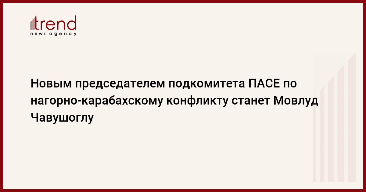 Будучи председателем Парламентской ассамблеи Совета Европы, новым председателем подкомитета Ассамблеи по решению нагорно-карабахского конфликта станет Мовлуд Чавушоглу.
