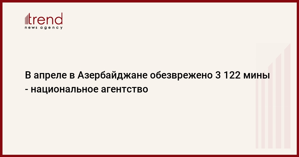 В прошлом месяце в Азербайджане от мин и неразорвавшихся снарядов очищена территория в 2 323 934 квадратных метра, сказали в среду Trend в пресс-службе Национального агентства по очистке от мин территорий Азербайджана (ANAMA).