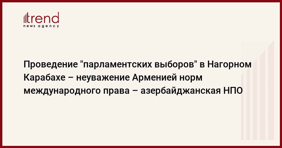 Армянский оккупационный режим в очередной раз проявил свое неуважение к международным организациям и нормам международного права, проведя в Нагорном Карабахе фиктивные "парламентские выборы", считает азербайджанская Организация освобождения Карабаха.