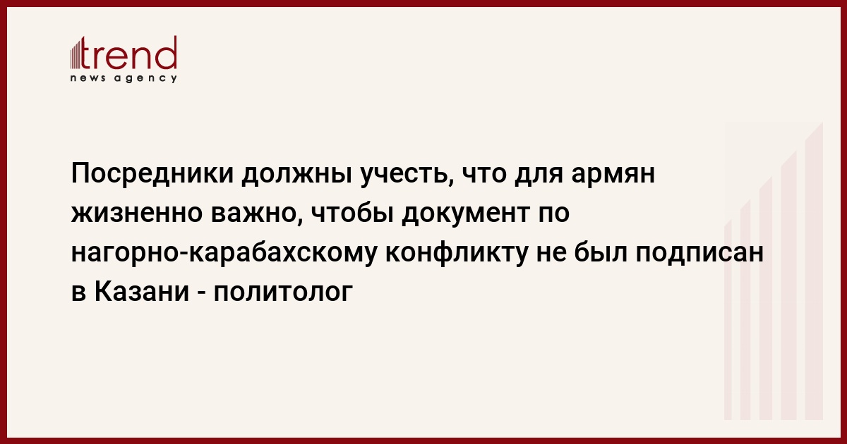 Посредники должны учесть, что для армян жизненно важно, чтобы документ по нагорно-карабахскому конфликту не был подписан в Казани, сказал во вторник Trend директор Центра политических инноваций и технологий, политолог Мубариз Ахмедоглу.