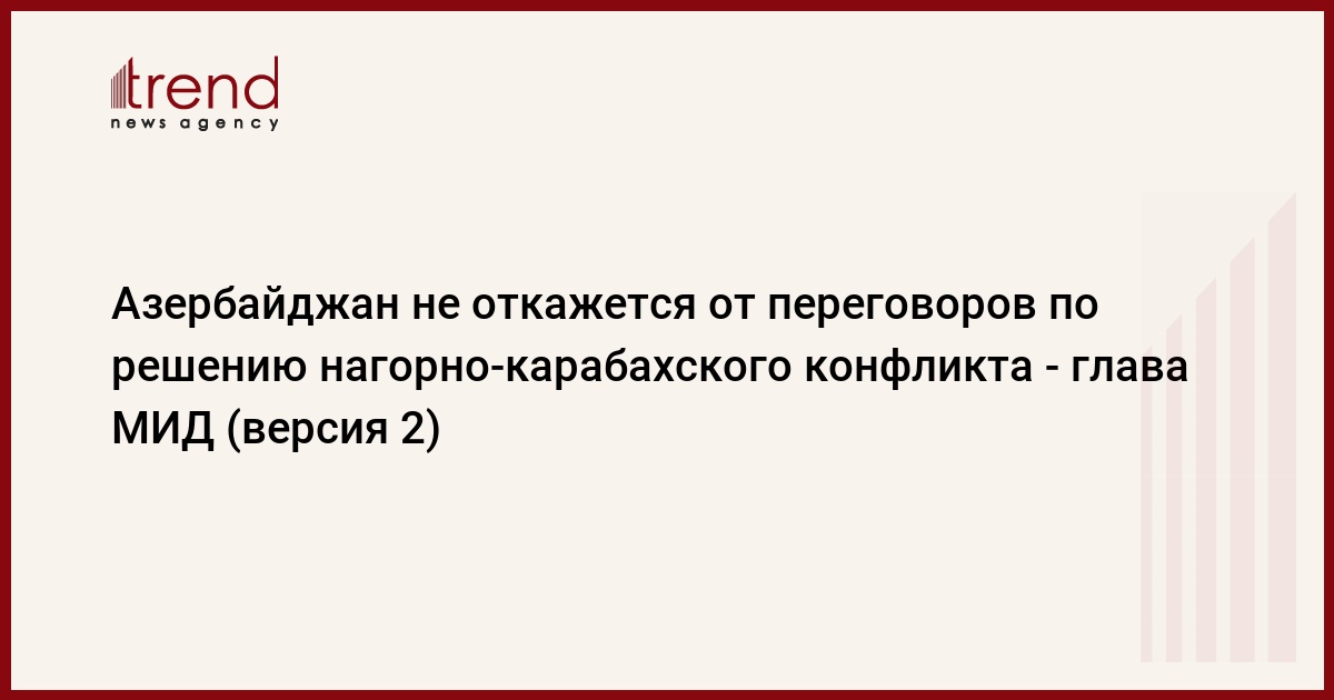 Азербайджан не откажется от переговоров по решению армяно-азербайджанского нагорно-карабахского конфликта, сказал в четверг министр иностранных дел Азербайджана Эльмар Мамедъяров.