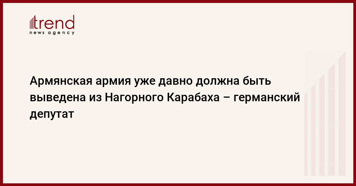 "Нагорный Карабах является неотъемлемой частью Азербайджана, и оккупации должен быть положен конец. Деоккупация создаст для многих беженцев в регионе новые перспективы. Мы тесно сотрудничаем с Азербайджаном для обеспечения стабильности и безопасности на Южном Кавказе", - сказала германский депутат.