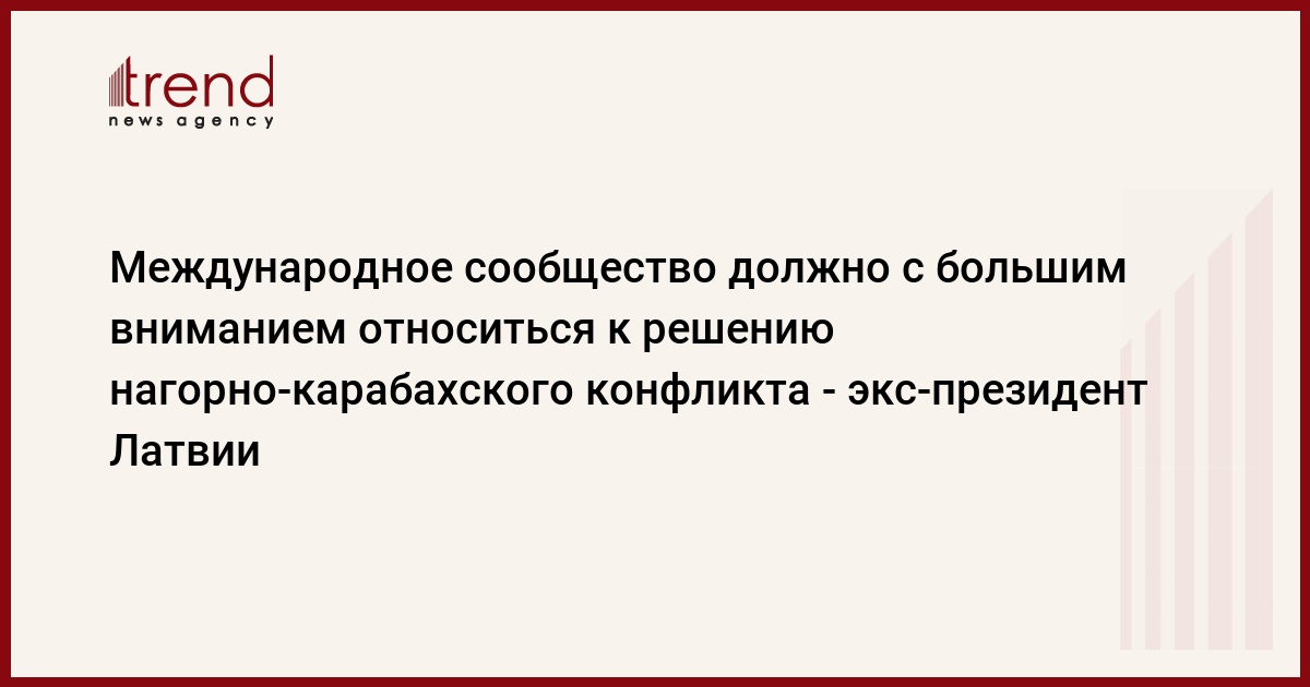 Международное сообщество должно с большим вниманием относиться к решению нагорно-карабахского конфликта, считает бывший президент Латвии Валдис Затлерс. Об этом он сказал журналистам во вторник в кулуарах первого Южнокавказского форума в Баку.
