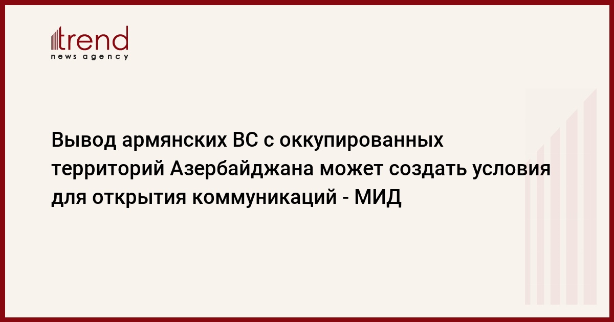 "Вывод армянских ВС с оккупированных территорий Азербайджана может создать условия для открытия коммуникаций, возвращения вынужденных переселенцев в свои родные дома, снижения напряженности", - отметил Эльмар Мамедъяров.