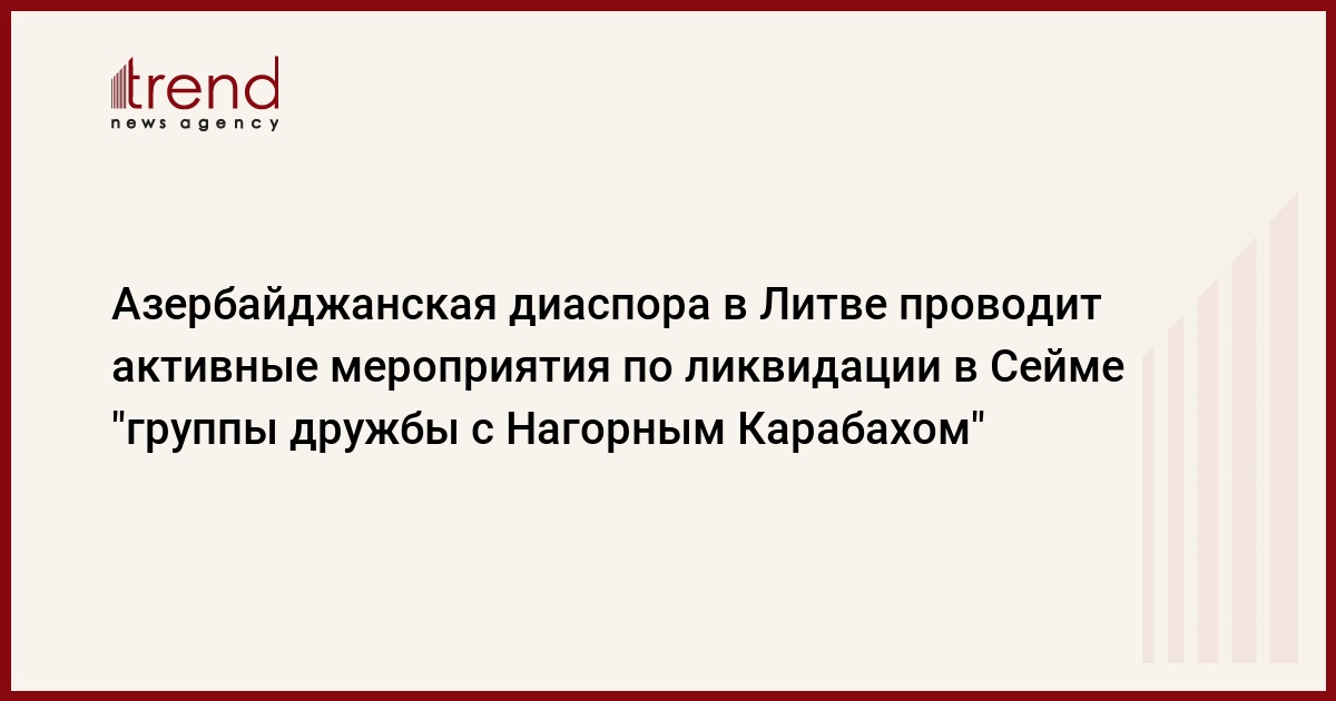 Азербайджанская диаспора в Литве проводит активные мероприятия по ликвидации "группы дружбы с Нагорным Карабахом" в Сейме Литвы, сообщил во вторник на своей странице в Facebook председатель Государственного комитета по работе с диаспорой Азербайджана Назим Ибрагимов.