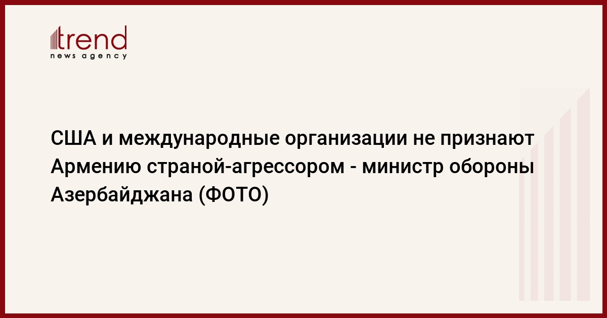 "Однако, к большому сожалению, до сегодняшнего дня международные организации и ведущие государства мира не заявили о том, что Армения является государством-оккупантом", - сказал министр обороны Азербайджана.