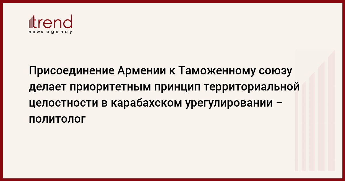 Отношение России к Азербайджану и нагорно-карабахской проблеме изменилось в лучшую сторону. Позиция других членов Таможенного союза - Казахстана и Беларуси к карабахской проблеме известна так же, как и отношение этих стран к Азербайджану. Обращение по собственной инициативе Армении о присоединении к ТС делает приоритетным принцип территориальной целостности и ускоряет урегулирование. В Армении это могут не понять, да в этом и нет необходимости, сказал Trend в понедельник директор Центра политических инноваций и технологий, политолог Мубариз Ахмедоглу.