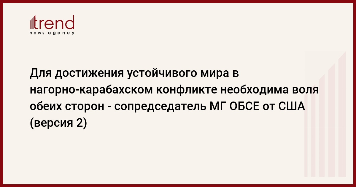 "Пришло время положить конец ненависти и страданиям. Пришло время сторонам начать совместную работу на основе Хельсинского заключительного акта", - подчеркнул сопредседатель Минской группы ОБСЕ от США.