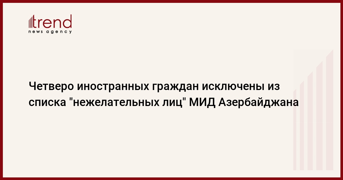 Четверо иностранных граждан, включенных ранее в список "нежелательных лиц" МИД Азербайджана за незаконное посещение ими оккупированных Арменией территорий Азербайджана, исключены из него.