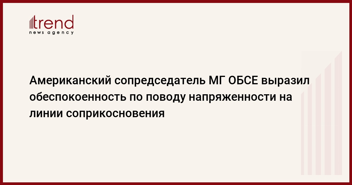 Сопредседатель Минской группы ОБСЕ от США Джеймс Уорлик выразил обеспокоенность по поводу напряженности на линии соприкосновения азербайджанских и армянских войск. Об этом Джеймс Уорлик сказал в интервью армянскому отделению "Голоса Америки".