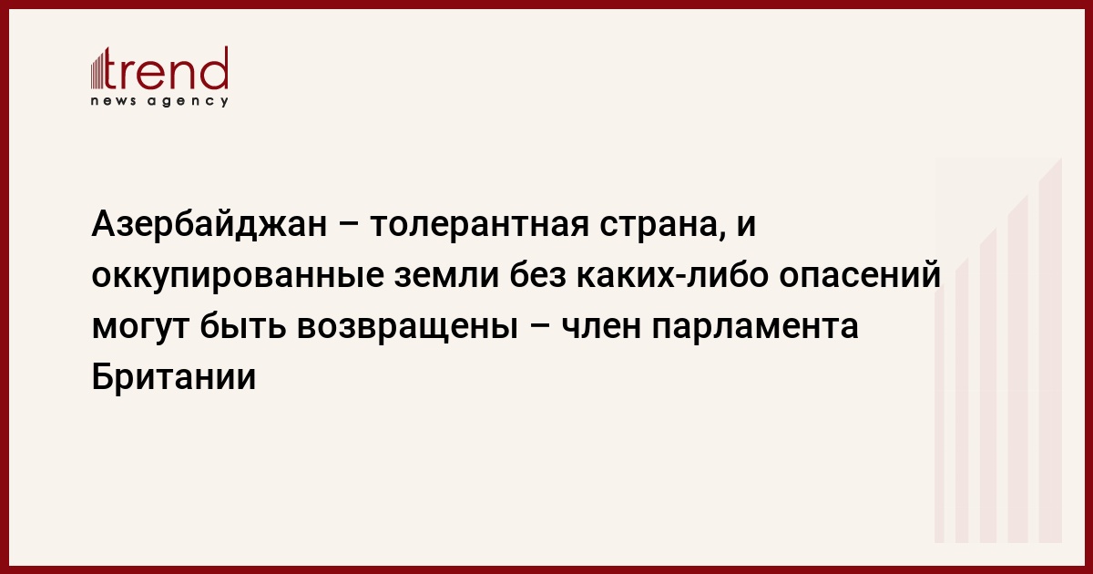 Азербайджан не только открыто продемонстрировал толерантное отношение ко всем религиям, но и показал, что эти религии поддерживаются. Поэтому оккупированные земли без каких-либо опасений могут быть возвращены Азербайджану, добавил член британского парламента.