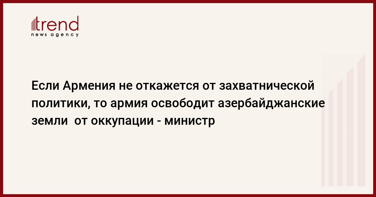 "Если Армения в скором времени не откажется от своей захватнической политики, то азербайджанская армия выполнит возложенные на нее задачи по освобождению земель от оккупации", - подчеркнул министр обороны.
