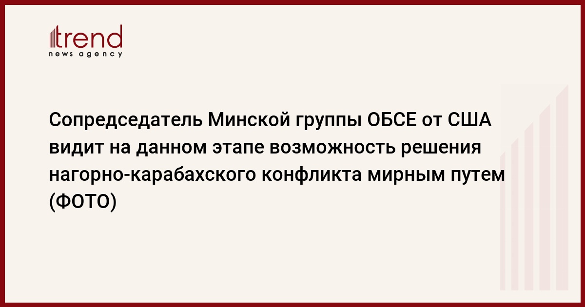 "Считаю, что народы обеих стран - Азербайджана и Армении, заслуживают мира и процветания. Нам нужно найти способ, и это та причина, по которой я взялся за эту работу в качестве сопредседателя , потому что я считаю, что можно найти путь к миру", - сказал он.