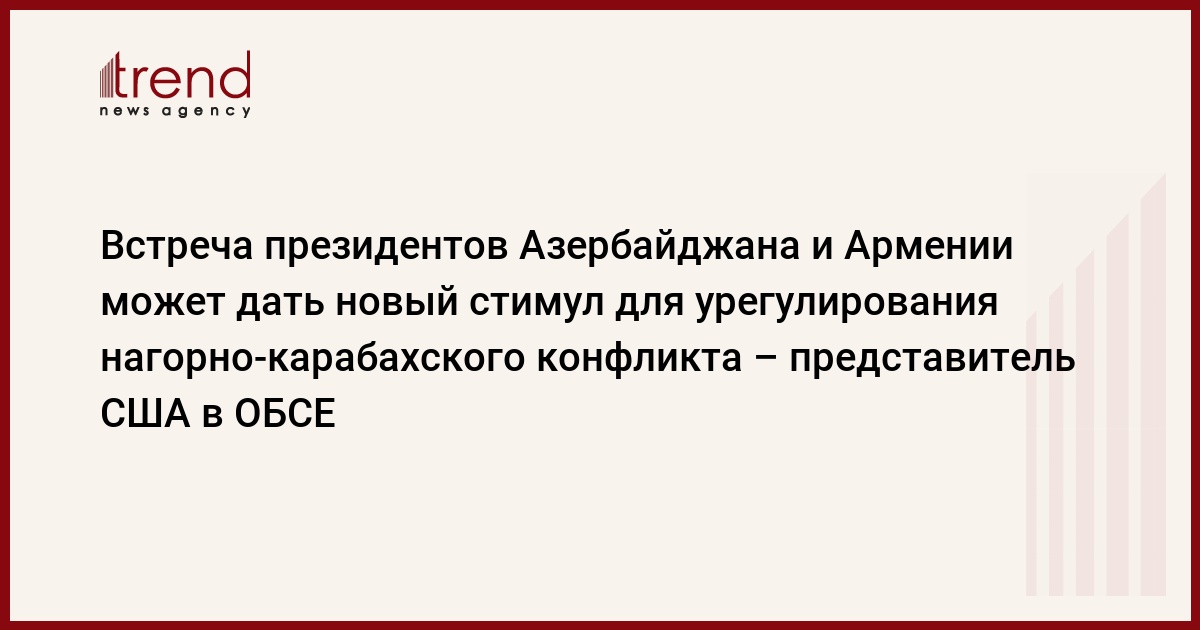 Встреча между президентами Азербайджана и Армении может дать новый стимул для урегулирования нагорно-карабахского конфликта. Об этом сказал в пятницу на заседании Постоянного совета ОБСЕ в Вене представитель США в ОБСЕ Дэниэль Бэр.