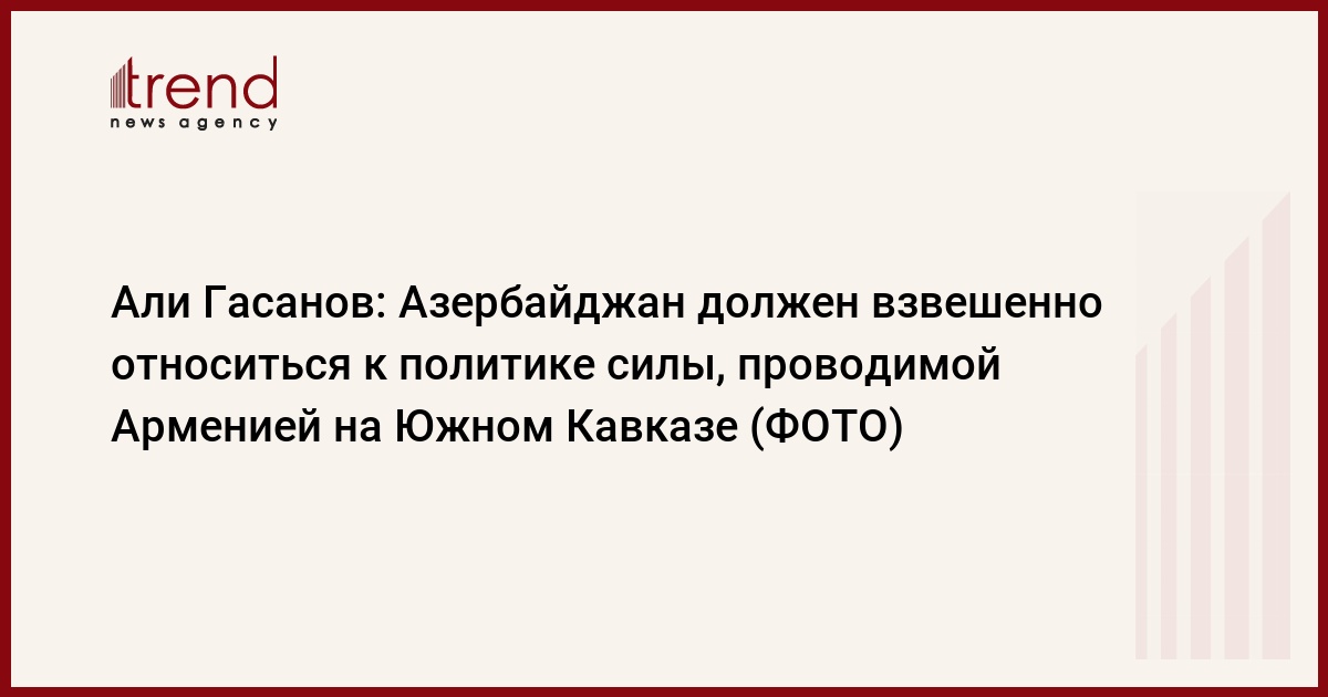 Гасанов отметил, что Азербайджан должен относиться к политике силы, проводимой Арменией на Южном Кавказе, взвешенно. Азербайджан должен демонстрировать, что обладает умом, интеллектом, опытом.