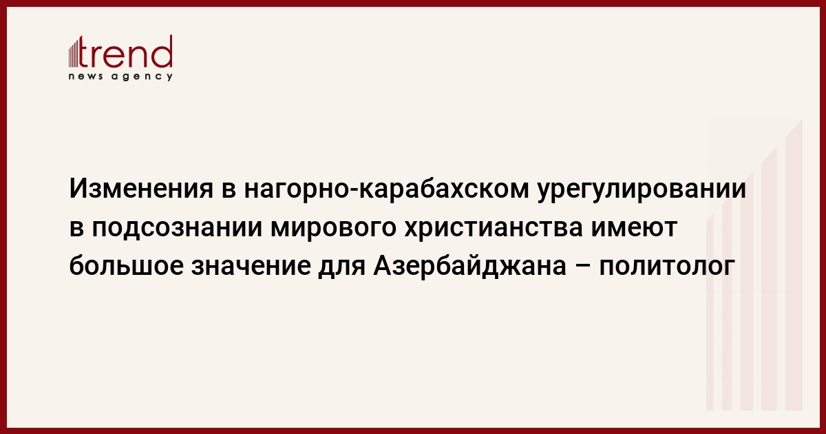 "Обращает на себя внимание значимый визит в Азербайджан высоких представителей Ватикана и Русской православной церкви, который пришелся на период вышеуказанных событий. Изменения в нагорно-карабахском урегулировании в подсознании мирового христианства имеют неизмеримо большое значение для Азербайджана. Это - значимый успех руководства Азербайджана в деле донесения до всего мира правды о стране", - подчеркнул политолог.