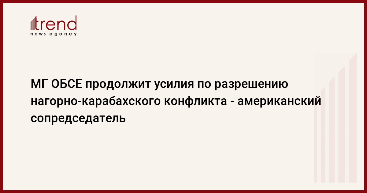 Минская группа ОБСЕ продолжит усилия по разрешению нагорно-карабахского конфликта, сказал в интервью армянской службе RadioFreeEurope американский сопредседатель Минской группы ОБСЕ Джеймс Уорлик.